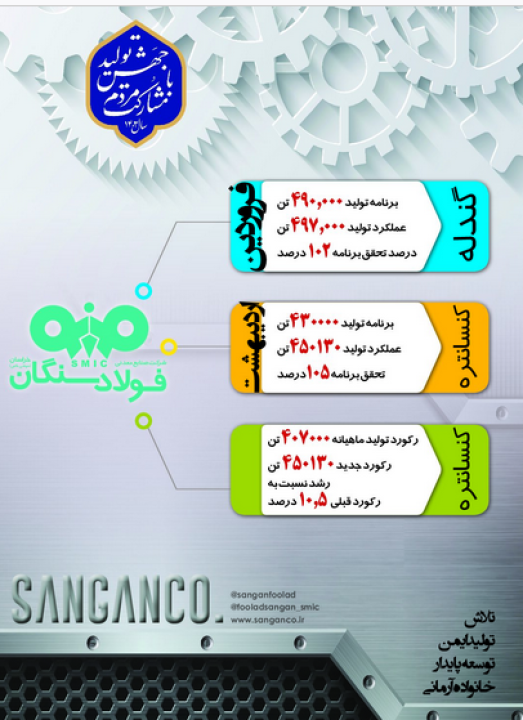 معاون بهره برداری فولاد سنگان گفت: رکورد قبلی تولید ماهیانه کنسانتره شرکت 407 هزار تن بود که با ثبت رکورد جدید شاهد رشد 10.5 درصدی نسبت به میزان تولید قبلی هستیم.