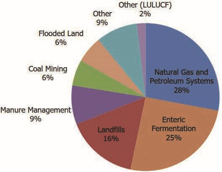 به گفته آژانس حفاظت از محیط‌زیست ایالات‌متحده (EPA)، زباله‌ها، تولیدکننده بزرگ متان و مسئول تولید 16 درصد از گازهای گلخانه‌ای (GHG) جهانی هستند. همان‌طور که در شکل شماره 2 مشاهده می‌شود، انتشار گاز متان محل‌های دفن زباله در ایالات‌متحده، سهم چشمگیری را به خود اختصاص داده است.