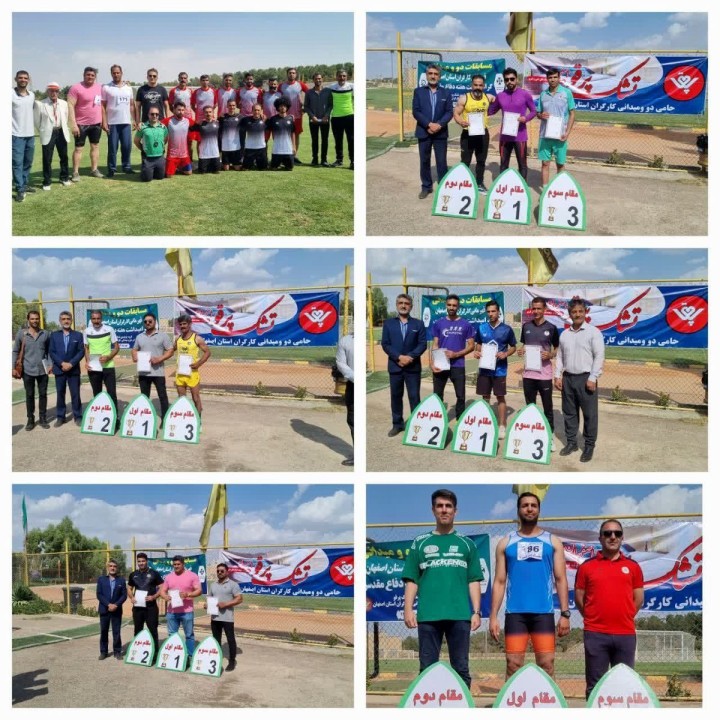 مسابقات قهرمانی کارگران استان در رشته دو و میدانی که در روز یکشنبه ۱۵ مهر ۱۴۰۳ در ورزشگاه قدس در دو رده سنی بالای ۴۰ سال و زیر ۴۰ سال با حضور ۹ تیم برگزار گردید و ذوب آهن اصفهان در جایگاه قهرمانی و تیم های هواپیماسازی اصفهان(هسا) و فولاد مبارکه در جایگاه دوم و سوم قرار گرفتند.