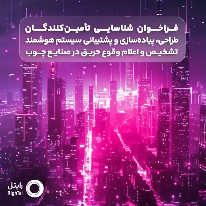 شرکت خدمات ارتباطی رایتل در نظر دارد از طریق این فراخوان، تأمین کنندگان فعال در حوزه ” طراحی، پیاده سازی و پشتیبانی سیستم هوشمند تشخیص و اعلام وقوع حریق در صنایع چوب” را مطابق با نیازمندی خود شناسایی نماید. بر این اساس از تمامی شرکت‌های فعال در این حوزه دعوت بعمل می‌آید تا ضمن مطالعه توضیحات زیر و مستندات پیوست، در صورت دارا بودن شرایط، از طریق گزینه زیر نسبت به اعلام آمادگی خود اقدام نمایند.