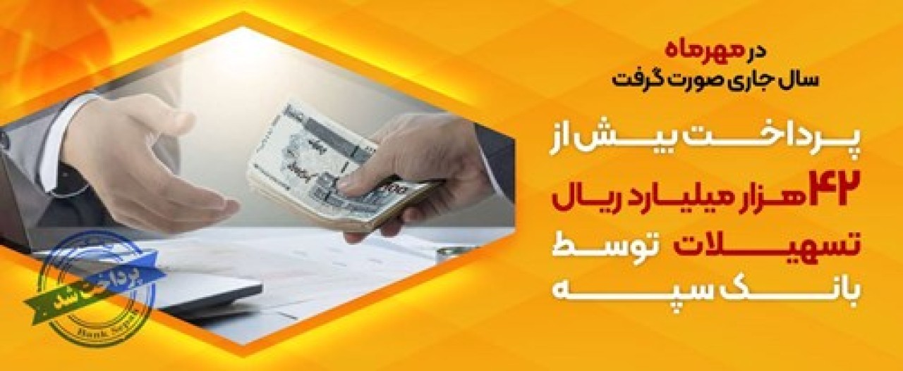 پرداخت بیش از ۴۲ هزار میلیارد ریال تسهیلات توسط بانک سپه