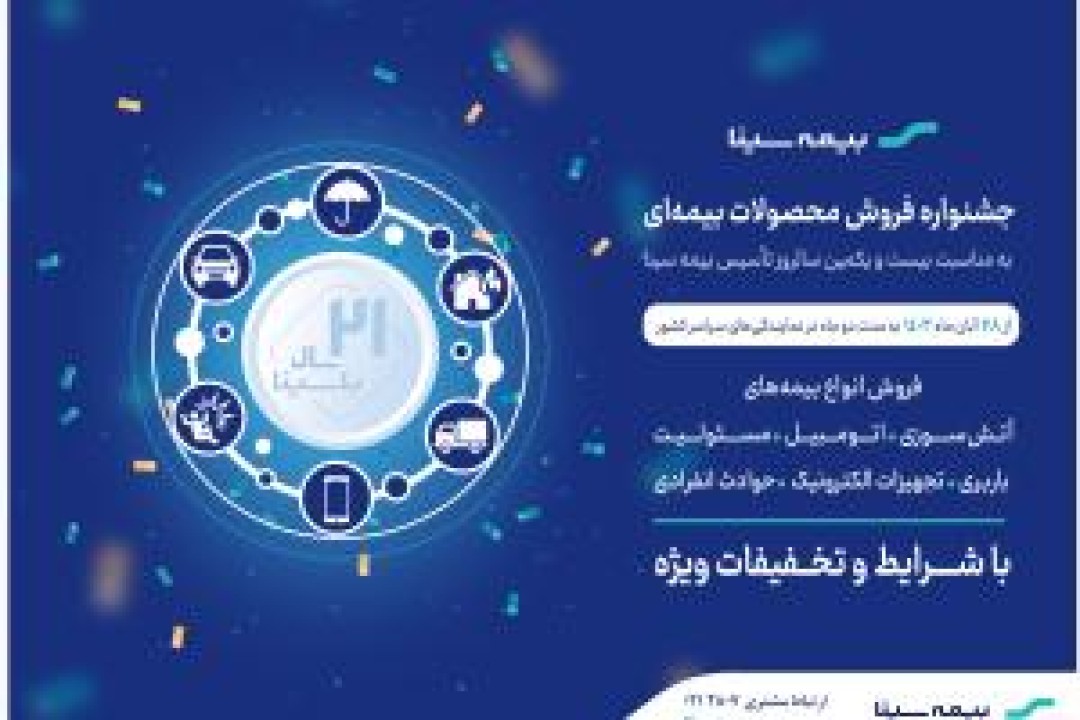 جشنواره فروش نقدی محصولات بیمه‌ای همزمان با سالروز تاسیس بیمه سینا به مدت 2 ماه برگزار می‌شود.