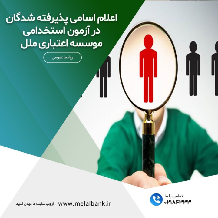 برای مشاهده اسامی پذیرفتهشدگان و کسب اطلاعات تکمیلی، به وبسایت رسمی موسسه اعتباری ملل به نشانی www.melalbank.ir مراجعه فرمایید.